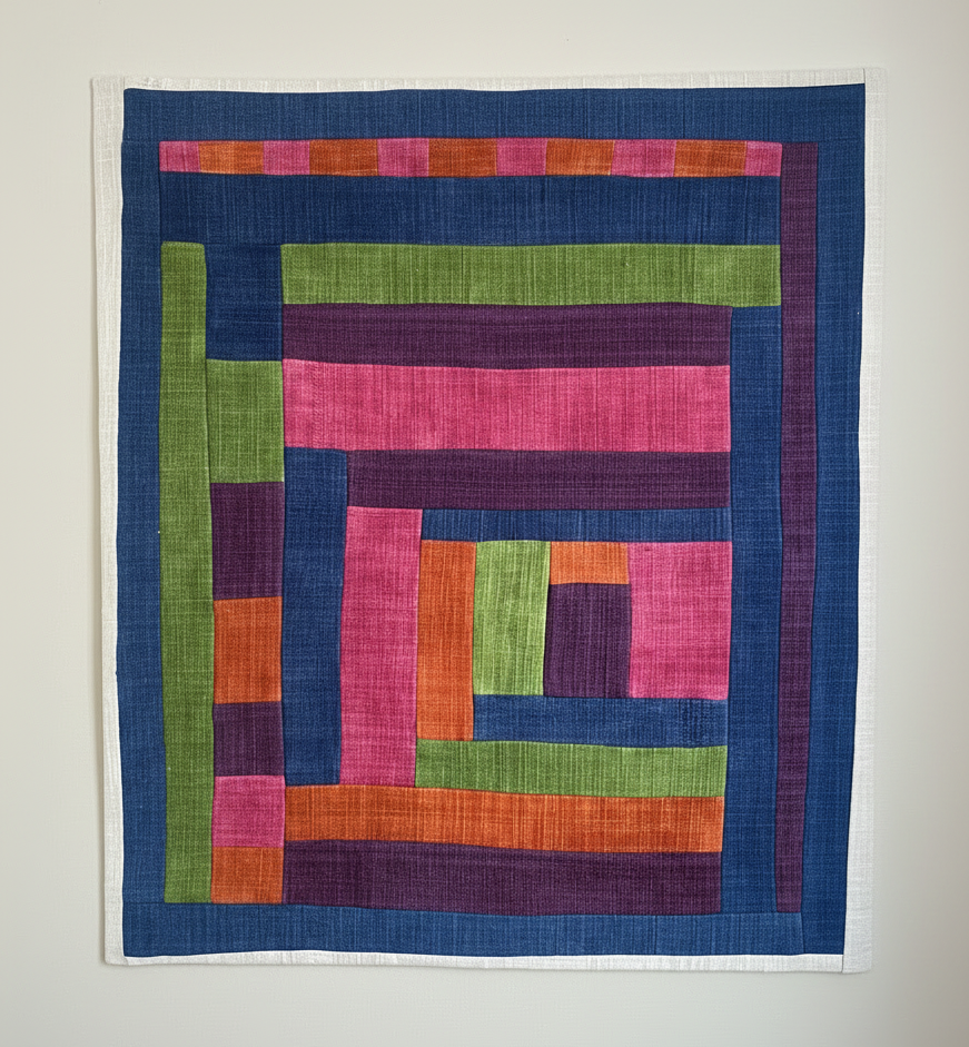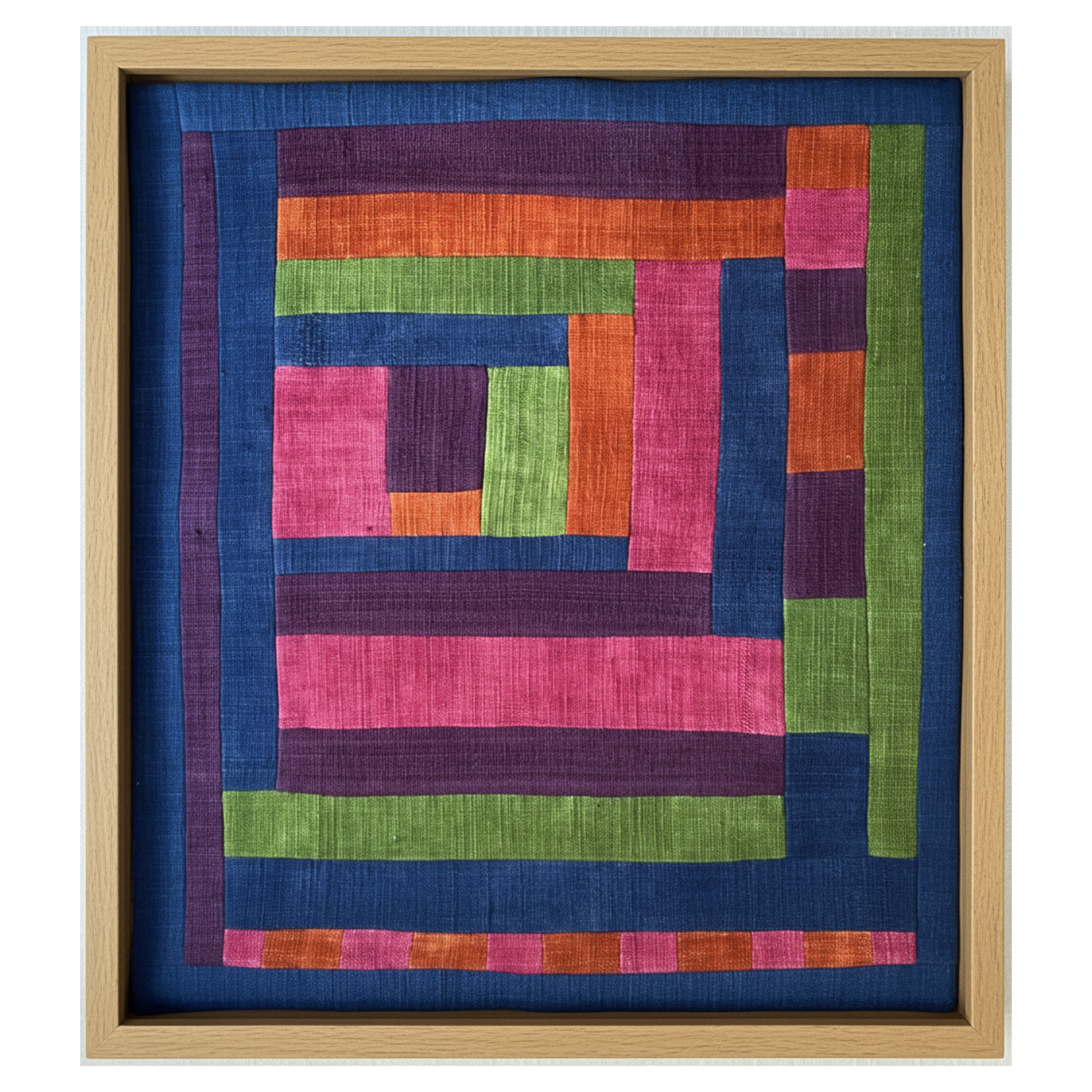 Abstract composition made from sewn, hand-dyed linen and khadi cotton.