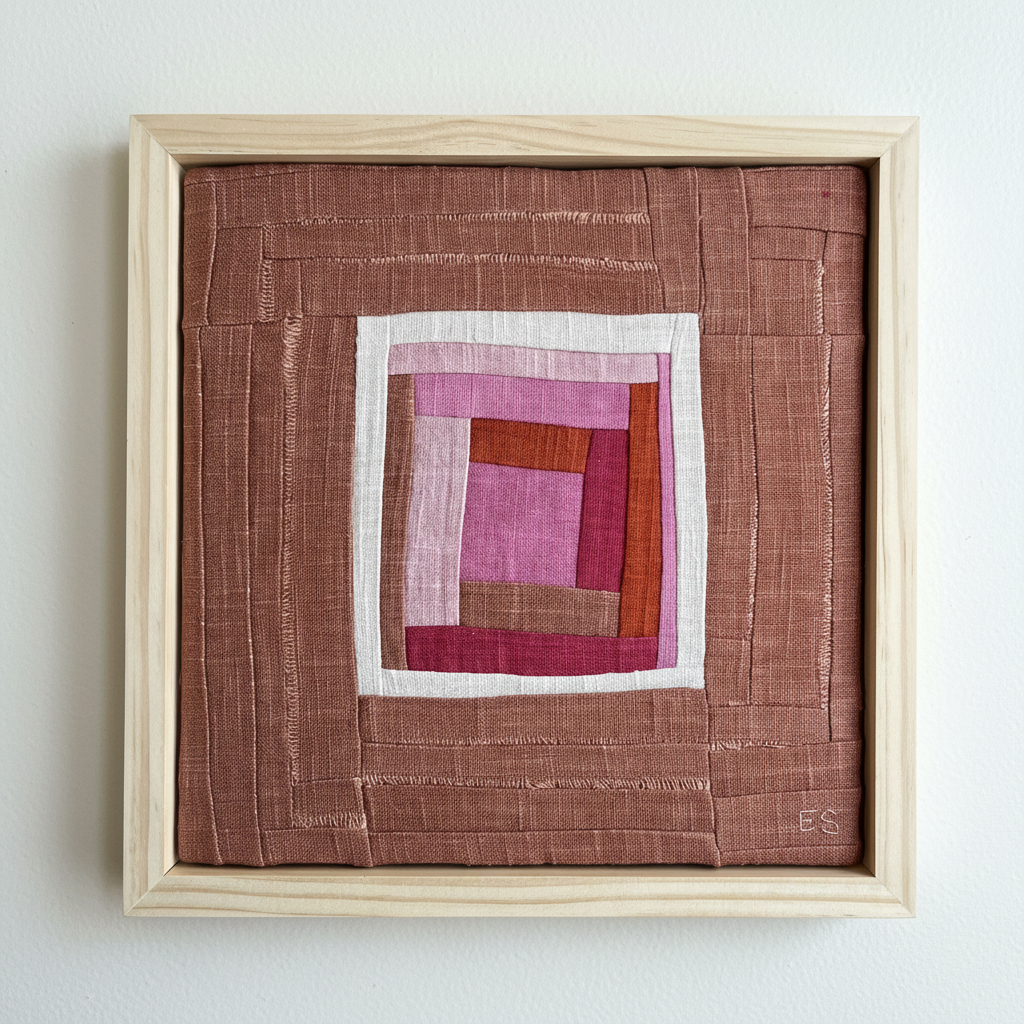Abstract composition made from sewn, hand-dyed linen.